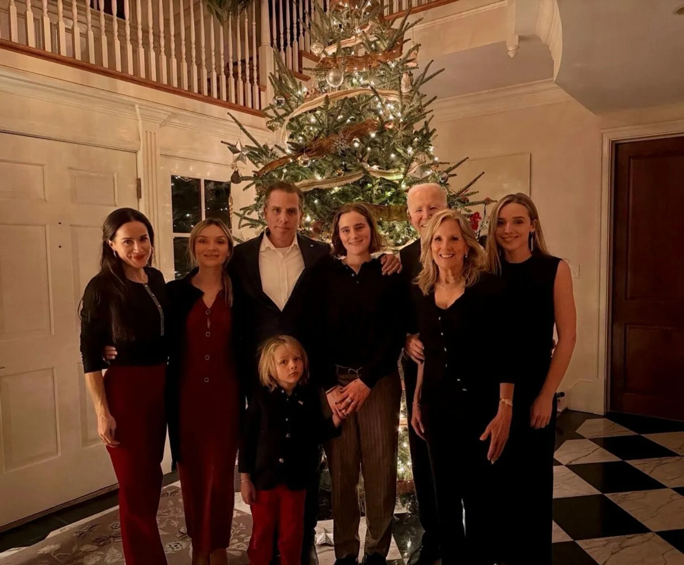 Всё дело в том, что на нём, конечно, есть сам Байден, но рассмотреть его достаточно сложно. 46-й президент США на фото стоит позади членов своей семьи, а его лицо лишь частично выглядывает из-за экс-первой леди Джилл Байден.