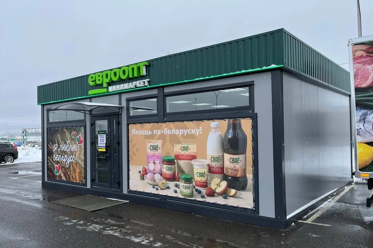 Торговая сеть "Евроопт" представила новые магазины для сельской местности. По подсчётам компании, такие можно ставить в деревнях с населением от 200 человек. Отличительной особенностью таких торговых точек стала модульная конструкция.