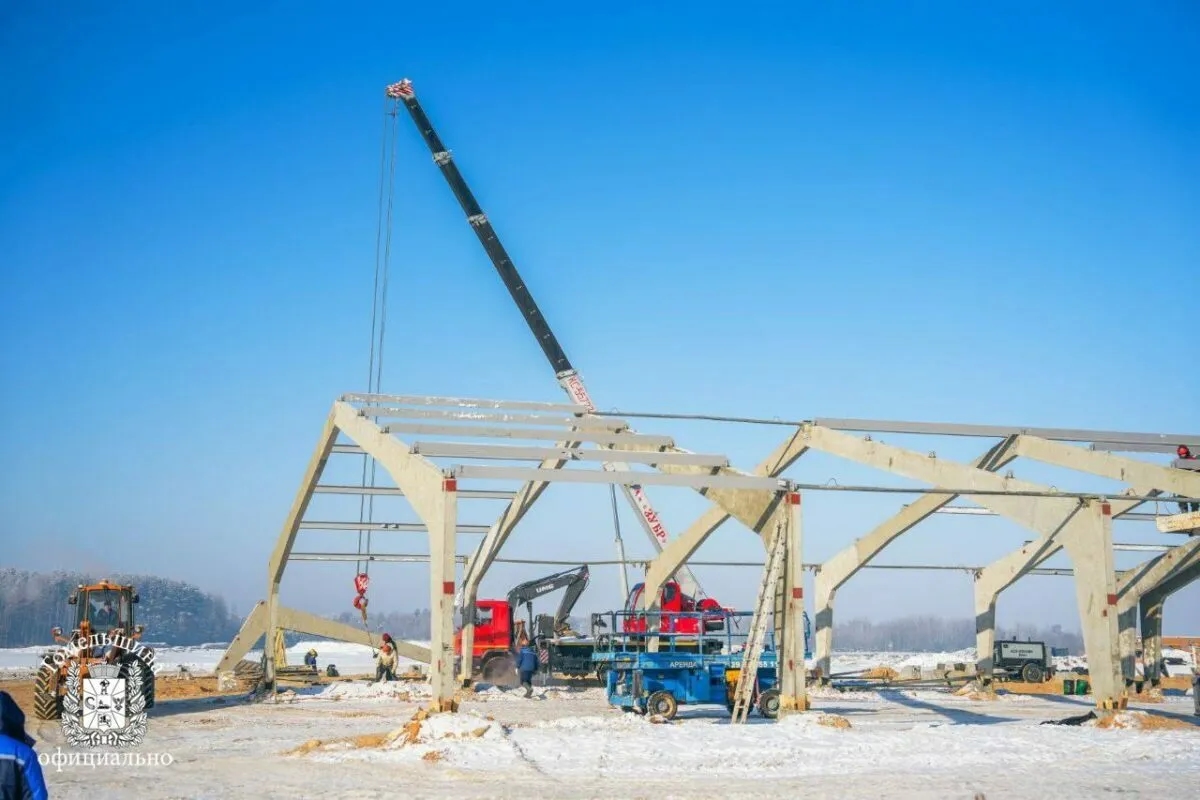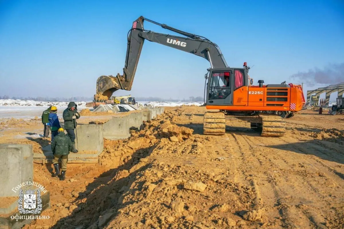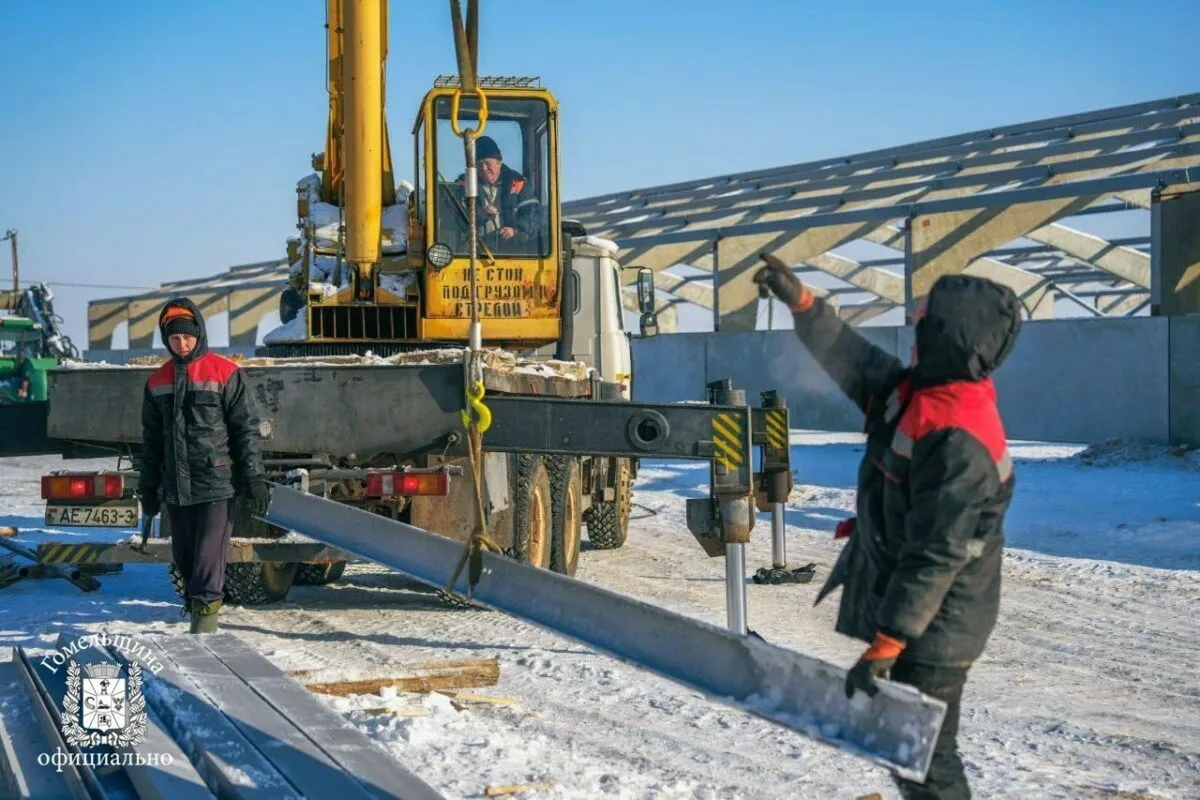 В Гомельской области активно ведут, даже несмотря на морозы, строительство самого крупного в стране свинокомплекса. Он рассчитан на 100 тыс голов.