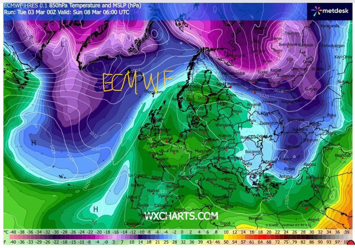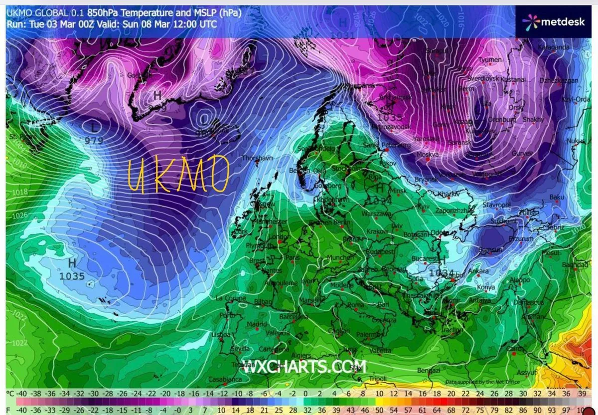Однако уже в середине недели, 5-6 марта, в Восточную Европу синоптики ожидают вторжение арктического холода. По предварительным прогнозам, озвученным авторами Telegram-канала @nadvorie, Беларусь оно зацепит лишь частично, поскольку основная воздушная масса пройдет несколько восточнее — через север европейской территории России, по направлению к Верхней Волге.