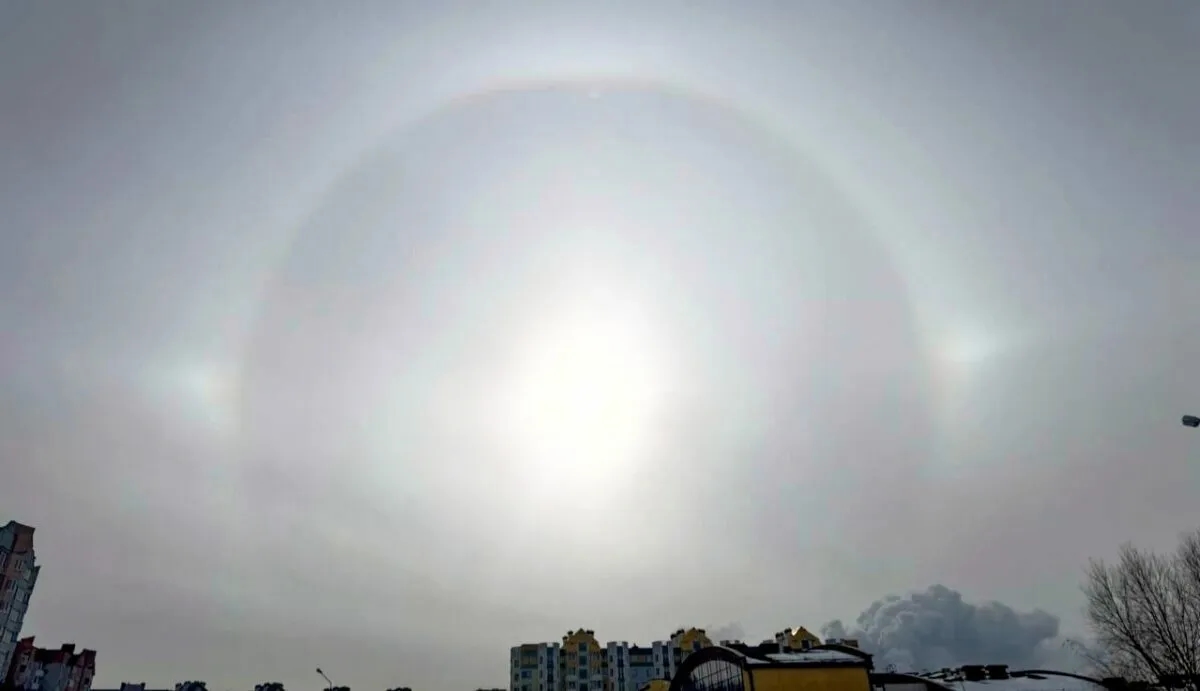 Над Минском жители заметили редкое раньше и довольно частое этой зимой погодное явление — солнечное гало.