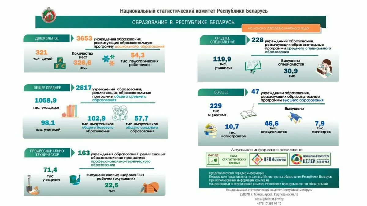 Национальный статистический комитет (Белстат) опубликовал статистику в сфере образования на начало учебного года 2025/26. Мы сравнили цифры этого года с прошлогодними, и оказалось, что в Беларуси становится все меньше школ, садиков и учеников. Естественно, количество учителей также не растет.