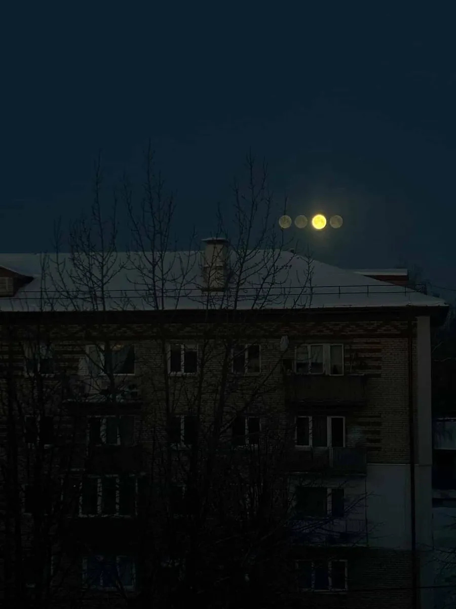 Однако специалисты развеяли романтический флёр всех эти фото и видео. Оказалось, что всё это, действительно, иллюзия, но куда прозаичнее и уж точно не редкая. Как пояснили авторы Telegram-канала "Метеодневник", тройные, а то и четверные луны, выстроившиеся в рядок - ничто иное как результат съёмки через многокамерный стеклопакет.