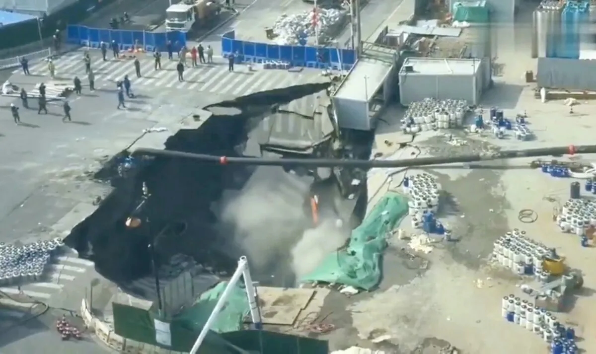 Инцидент произошел на пересечении улиц Цисинь и Лиань, где ведутся масштабные строительные работы по возведению новой линии метро. На кадрах камер видеонаблюдения видно, как на асфальте появляются трещины, а затем земля внезапно обрушивается , поглощая близлежащие здания.