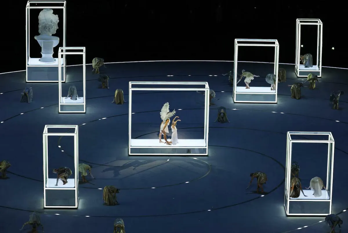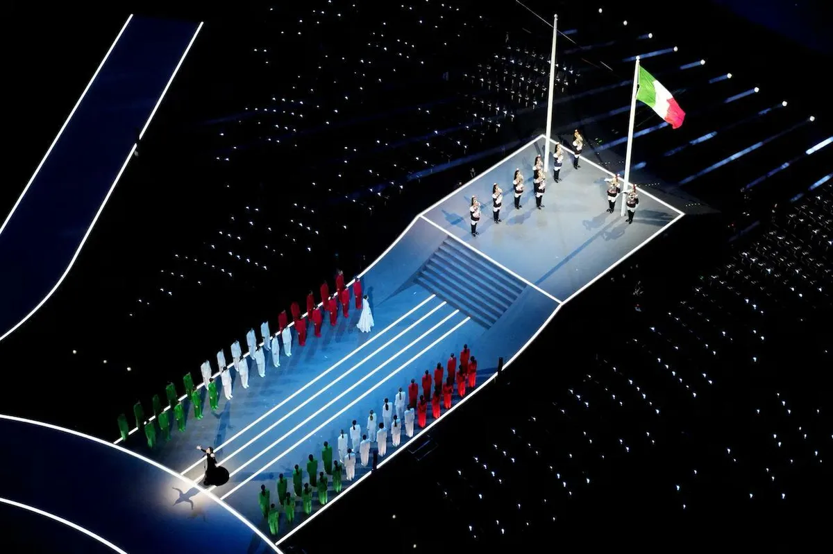 В представлении нашлось место для номера в честь итальянского дизайнера Джорджо Армани, который умер в сентябре прошлого года. По сцене прошли модели в костюмах модного дома в цветах итальянского флага. Затем последовал традиционный парад спортсменов.