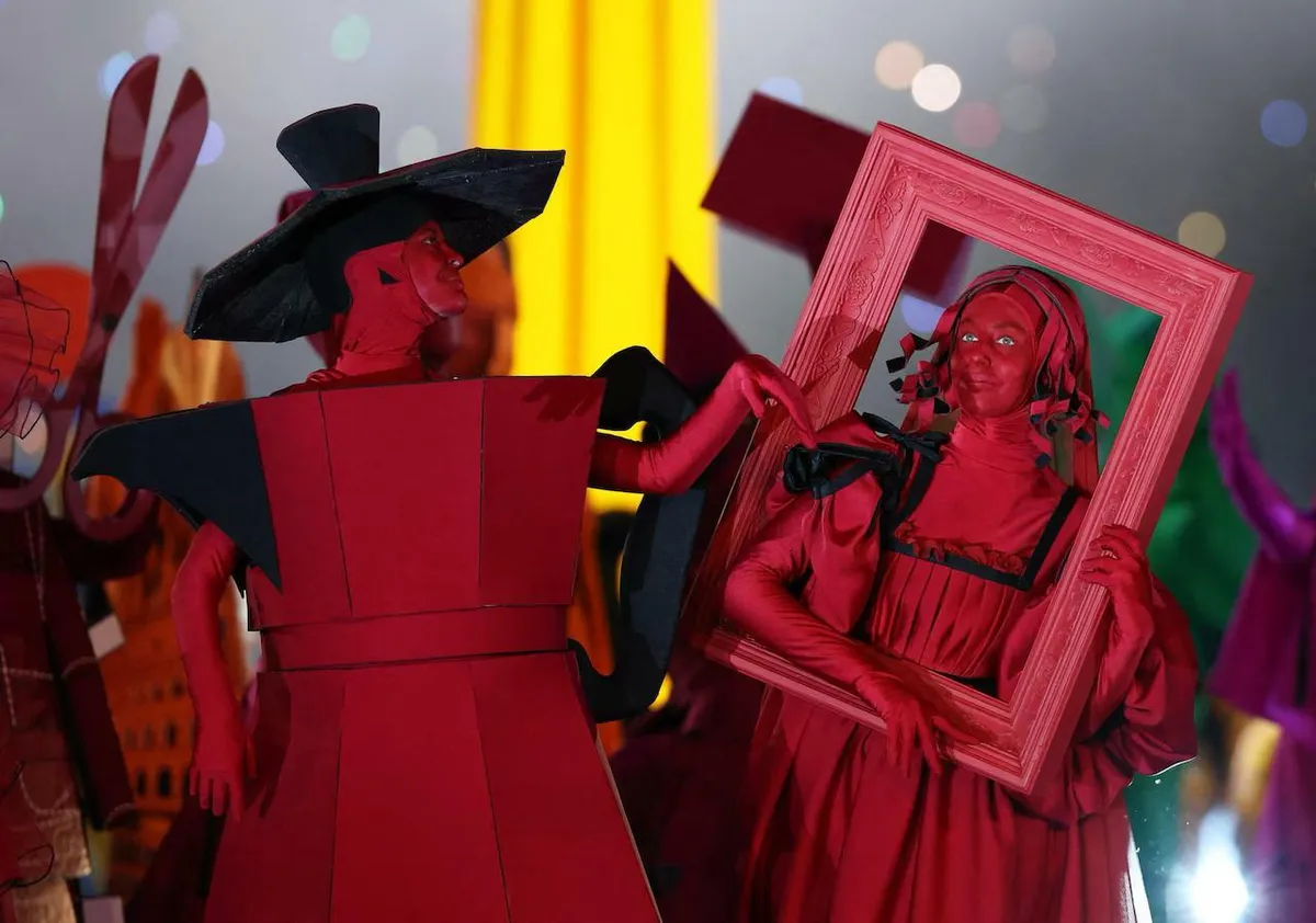 Церемония началась с выступления танцоров театра Ла Скала, изображавших миф о Купидоне и Психее. Следующая часть церемонии была посвящена итальянской опере — её символизировали артисты с гигантскими головами композиторов Джузеппе Верди, Джакомо Пуччини и Джоаккино Россини, а также женщина-дирижёр в костюме, вдохновлённом классикой итальянского кино.
